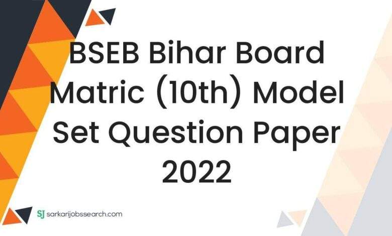 Bihar School Examination Board BSEB Matric Annual Examination Model Set 2022 |