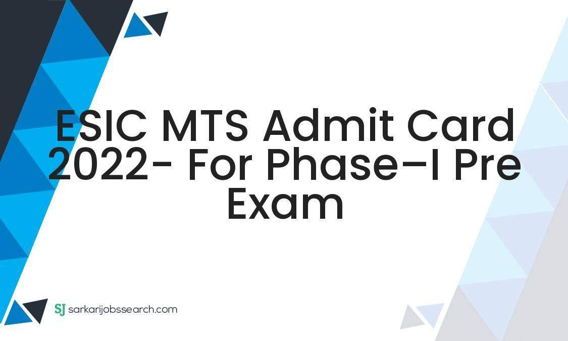 ESIC MTS Admit Card 2022- For Phase–I Pre Exam