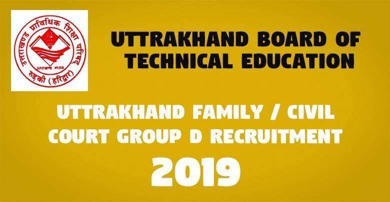Uttrakhand Board of Technical Education (UBTE)Uttrakhand Family / Civil Court Group D Recruitment 2019Advt No. : 707 Short Details of Notification |